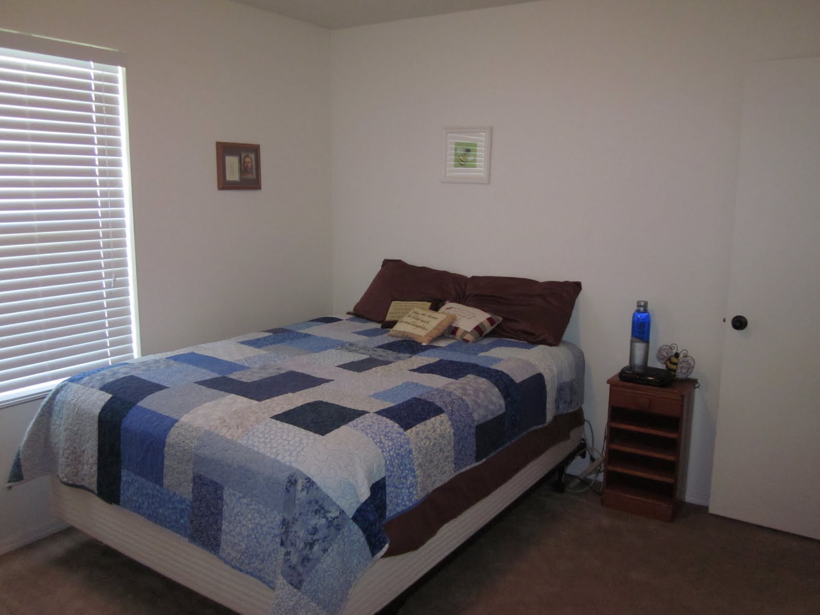 This is our guest bedroom. Thankfully Andy and I both had a bed before we got married, so we were able to put his mattress in the guest bedroom. (His was older, but still in great condition.) This room never got painted. It is just the plain white that was painted when the house got built.
