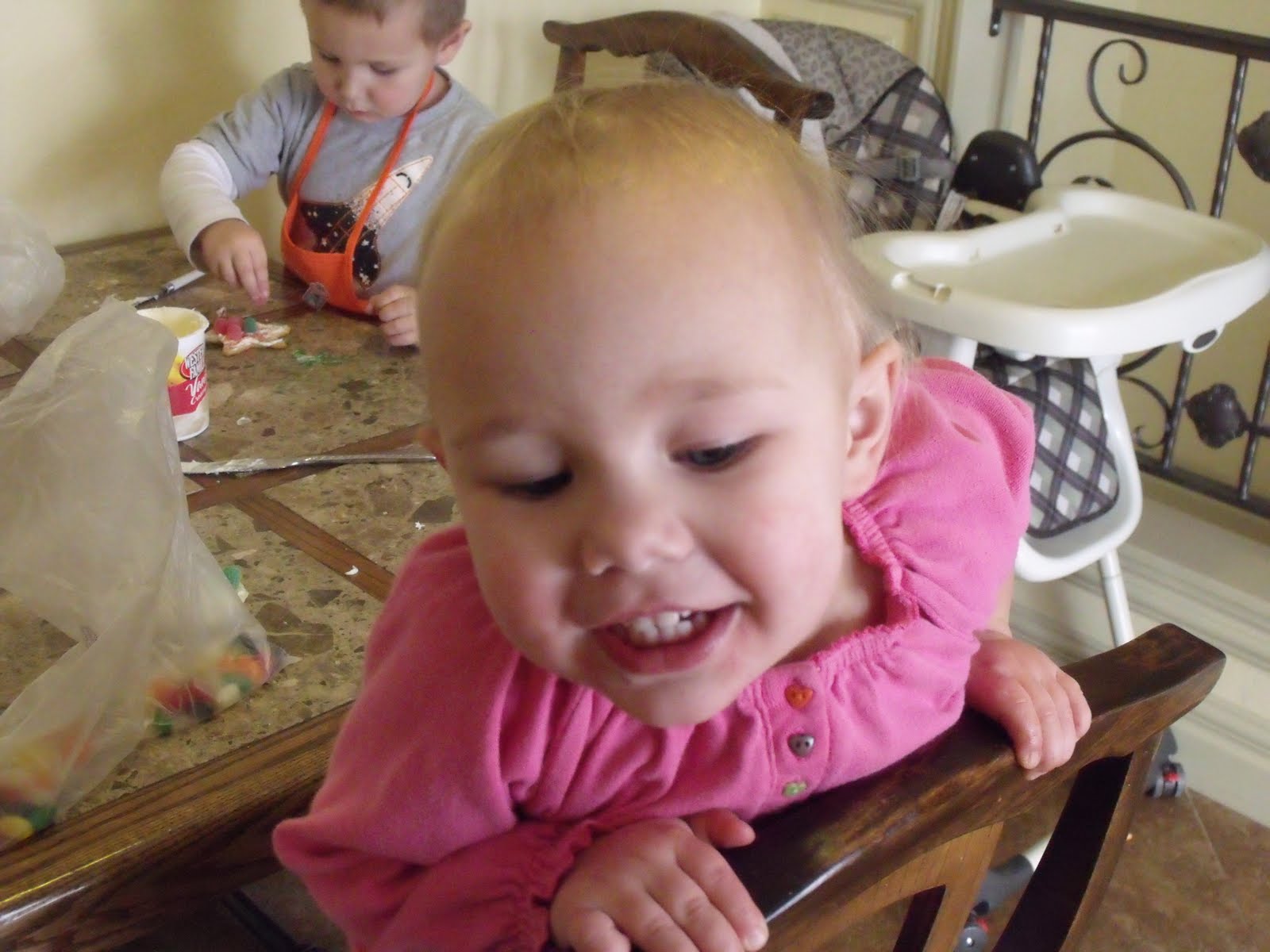 Yay Christmas! Although I always loved Christmas as a kid, as I got older I became sort of a Scrooge. Christmas just started to stress me out! All the money being spent, the zillions of family get-togethers, and the unavoidable let down when it was all over. But this year something is different, I am so excited for Christmas and I’m having so much fun with my kids! They are at a good age, Christmas is so magical and fun and they are starting to remember our family’s traditions and are excited to start new ones. Yay! We have jumped right into the season with some fun stuff! The day after Thanksgiving we went to the annual Christmas Lights Parade here in Spanish Fork. We have gone for the past few years and it’s awesome! It has this very small town feel with homemade floats, inflatable Frosty the Snowman tied to a Jazzy, and a Elk head dressed up like Rudolph attached to the front of a truck pulling a trailer full of snowmobiles wrapped in Christmas lights. Like I said, awesome! The kids loooove it! One of the floats was a trailer that had a light up Nativity on it. When it passed us Miles shouted out “Bye Baby Jesus!” After the parade we went home and set up the Christmas tree. We pretty much let the kids do it all and we have such a mish mosh collection of ornaments that it looks a little like Christmas throw-up, but it’s cute. The next week I took the kids to see Santa at Macey’s grocery store. I am too much of a wuss to brave the malls at Christmas time so I thought it was a good option. He was a very convincing looking Santa I thought and both Savanna and Miles sat on his lap for the first time. Avery was too shy, maybe next year. The next day my mom came down and we baked and decorated Christmas cookies. This was really fun, the kids really got into it! Avery loved rolling the dough with the rolling pin. We also made ginger bread men. I don’t know why I thought to make them so big, they puffed up so much in the oven! And finally, my oh-so-creative daughter made herself a crown and skirt out of wrapping paper. ‘Tis the season!